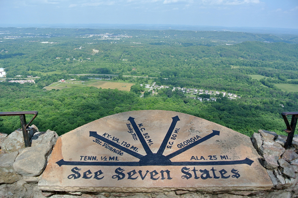The Jaspers finished out their adventure on Lookout Mountain by driving up to Rock City, Georgia in the Chattanooga Valley–about an hour away from their cabin and after a pleasant walk through the gardens to the Summit marker they reveled in the gorgeous, mountaintop view where they could see the entire range of Cherokee ancestral land.
